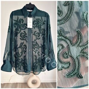 Zara Emerald Green Embroidered Blouse