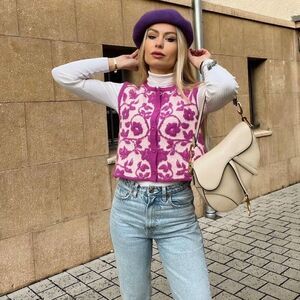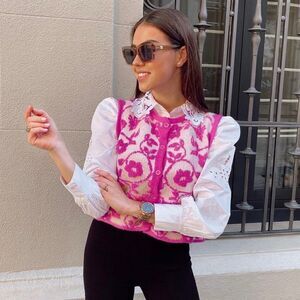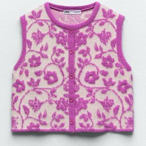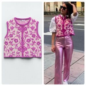 Zara Floral Jacquard Vest Cardigan New Barbiecore Barbie Core