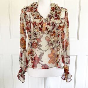 Zara Floral Ruffle Sheer Top