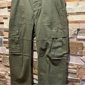 These Zara high rise jeans in a striking green color offer a relaxed fit, combining style and comfort effortlessly. Made from durable fabric, they are perfect for everyday wear and versatile enough for various occasions.