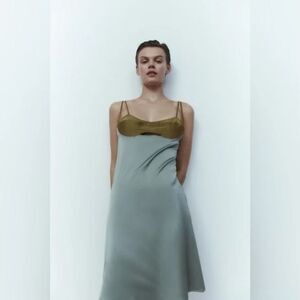 Zara, Green Satiny Lingerie Slip Dress, Size S