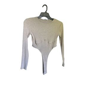 Zara Grey High Leg Long Sleeve Ribbed Thong Body Suit Size L