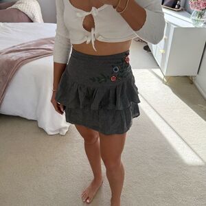 Zara Grey Pleated Mini Skirt with Embroidery – Size S