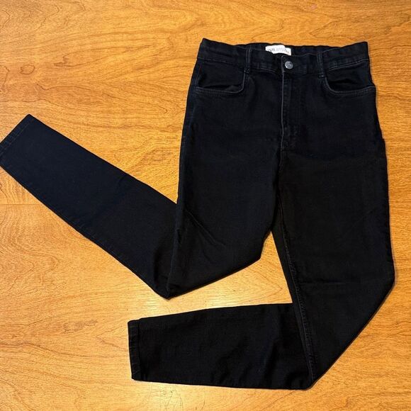 Stylish black skinny jeans from Zara. Perfect for any occasion. Comfortable fit. Would pair perfectly with boots and cozy sweater. Only flaw is they show some banding across upper thigh area, shown in pics.
