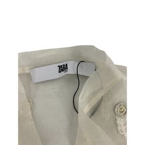 Zara Icons Womens Vest Top XS Ivory Silk Embellished Open Front Sheer Chiffon NWOT