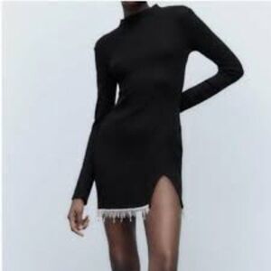 Zara Jewel Soft Mini Dress Black Small Long Sleeve Size Small NWT