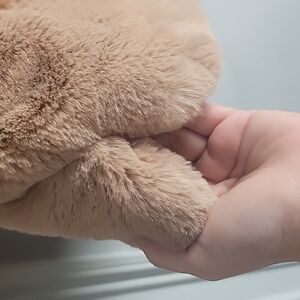 Faux fur coat that is extremely soft. Silver Zip closure. Front pockets. Size 9. A tan/blush color.