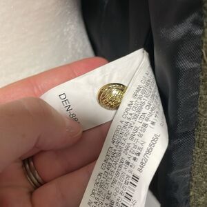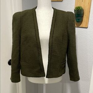 Zara Khaki Green Textured Open Front Blazer Gold Buttons Shoulder Pad Size Large