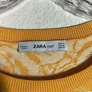 Zara Knit Crew Neck Pullover Sweater Women's Medium Yellow Floral