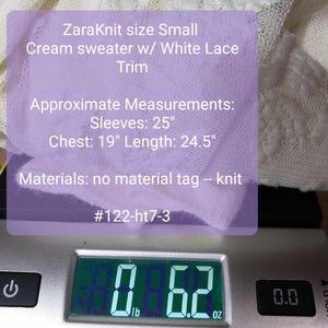 ZaraKnit size Small Cream Knit with White Lace Trim Knit Sweater