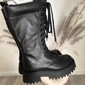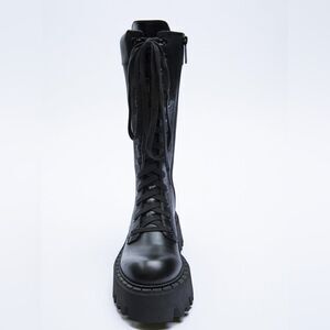 Zara LACED LEATHER BOOTS WITH TREADED SOLES