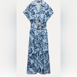 Zara Linen Blend Printed Shirtdress