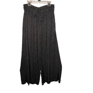 Zara,M, Black white polkadot, high-rise elastic waist with tie belt pocketed wide leg calypso style lightweight pant