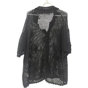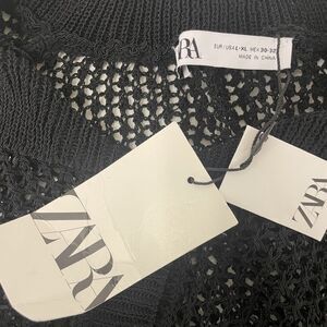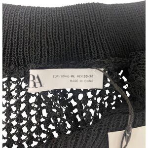 Zara mens shirt XL Button Up Black Crochet Collared Neck Short Sleeve NWT