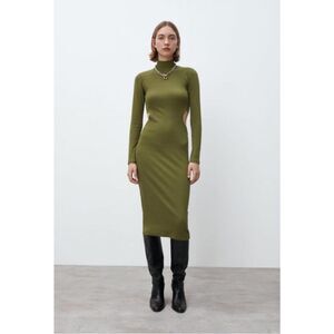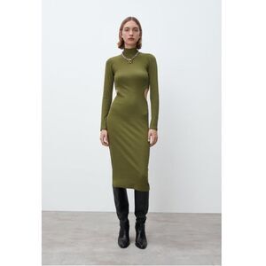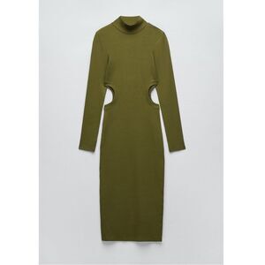 Zara NWT never been worn cut out midi dress. Ridded material. Has cut out sides. In a khaki color, not lined. Size S, fits TTS. Beautiful dress to dress up or down. Happy Poshing!