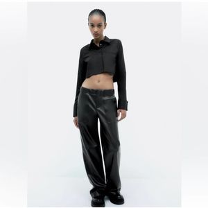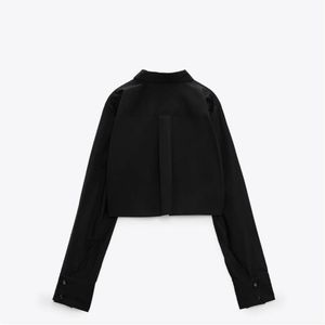 Zara NWT Long Sleeve Cropped Button Down Shirt Blouse Black Size XS Front Pocket