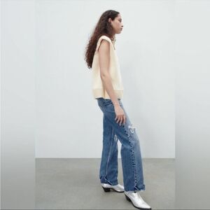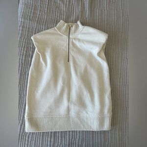Zara vest. Size S, relaxed fit. New with Tags. Padded shoulders, sleeveless, super soft plush material. High collar with zip closure. Soft, cozy and warm, perfect for transition weather. Very stylish and versatile.