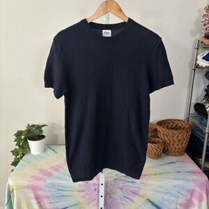 Zara Navy Textured Short Sleeve Tee Classic Crew Neck men’s medium