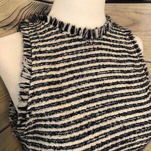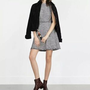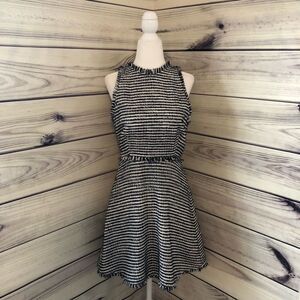 Zara Navy & White Striped Tweed Fit & Flare Dress Size Small