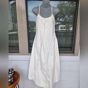 Zara Off White Spaghetti Strap Maxi Denim Dress Light Blue Stitching Sz XS NWT