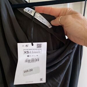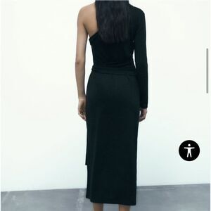 Zara One Arm Asymmetrical Longsleeve long Dress Black XS Nwt