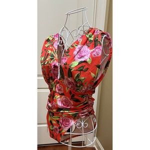 "Zara"Orange Pink Green Floral Flower Tropical Ruched Draped Bodysuit Size M-NWT