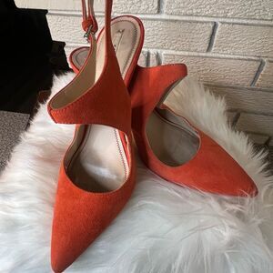 Zara Orange Suede Swing Back Swing Back.With Strap Six Inch Heel Size 6 1/3