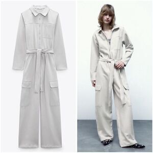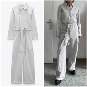 Zara POCKETED UTILITY JUMPSUIT GRAY
