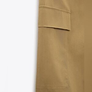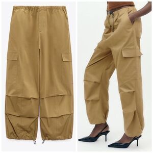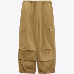 Zara Parachute Cargo Pants Taupe Brown New