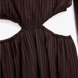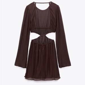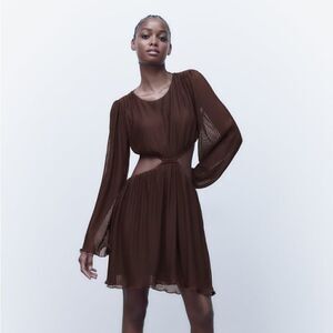 Mini dress with round neck and long sleeves. Opening detail at waist and openings at back with elastics. Interior lining.