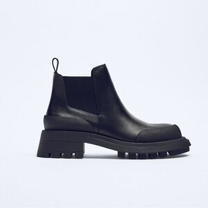 Zara RUBBERIZED TOE LEATHER ANKLE BOOTS