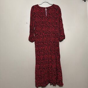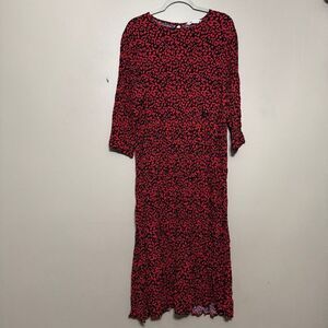 Zara Red and Black Leopard Print Maxi Dress XL