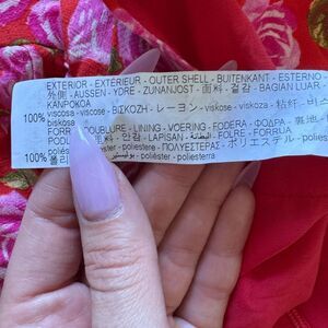 The details: Beautiful red floral print top with side zipper access on the waist and sleeve wrists for a close fit. The sweetheart neckline has a wire detail for structure.