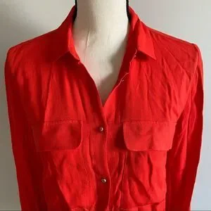 Beautiful red button up blouse. Size XS from Zara. No visible flaws, no trades.