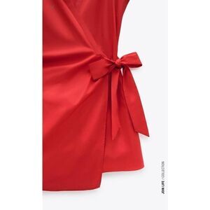 V-NECK JUMPSUIT WITH SHORT SLEEVES. ELASTIC WAISTBAND. FRONT TIE WRAP CLOSURE.