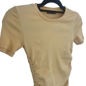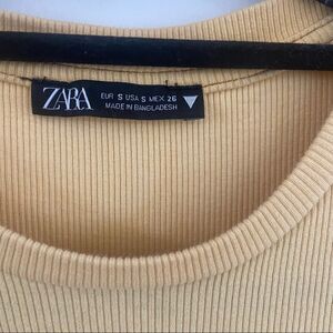 Zara Ribbed Side Ruched Mini Bodycon Dress Yellow Small