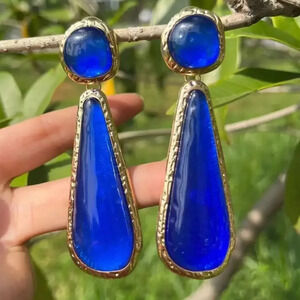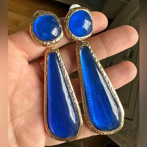 Zara Selena Gomez Gold Blue Resin Earrings