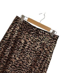 Zara Sequin Animal Print Midi Skirt Pull on Small