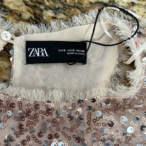 Zara Sequin Pink Beige Sleeveless Tunic Top Size S