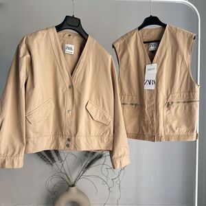 Zara Set Jacket Vest NWT Medium Cotton Oversized Beige Limited Edition