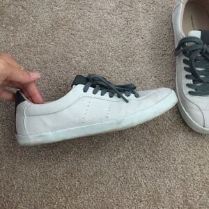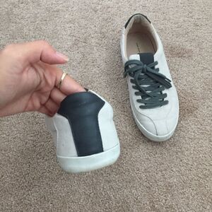 Trendy cream suede shoes from Zara's Basic Collection. Has navy detailing throughout and navy laces. Very stradivarius inspired. Retails for over $50. Minor marks but can easily be cleaned off. Size 37, best fits US 6.5. No trades.