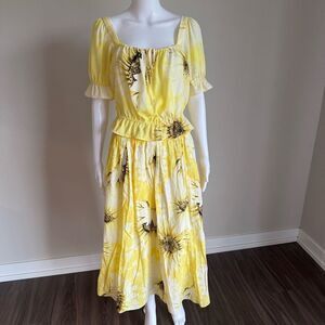 Zara Sunflower Print Two Piece Dress With Ruffles Size M