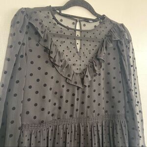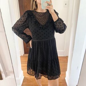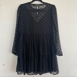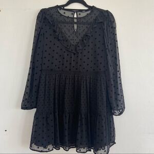 Zara Swiss Dot Tiered Ruffle Dress Size Medium Black