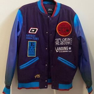 Zara Sz M NWOT COMBINATION PATCHES BOMBER JACKET unisex