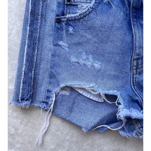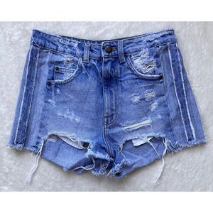 Zara TRF Distressed Ripped Denim Cutoff Side Stripe Shadow Pocket Jean Shorts