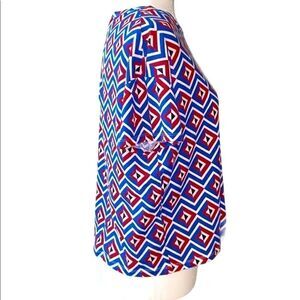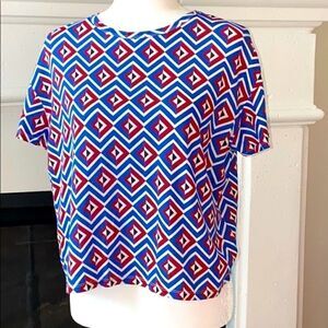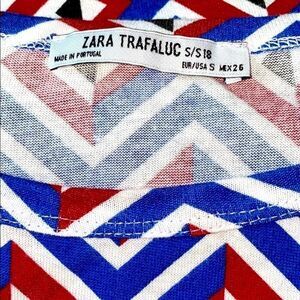 Zara T-Shirt Short Sleeve Colorful Crew Neck S Blue Red White Retro Aztec Artsy