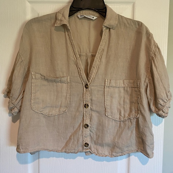 Perfect for everyday wear. Zara Minimalist, organic cutoff boyfriend top. Button up, beach wear original bohemian