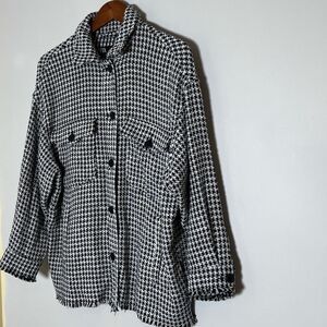 Chic textured knit jacket with black and white pattern. Ideal for stylish layering. Excellent condition!
