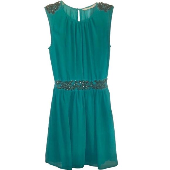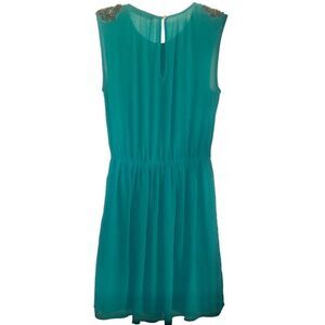 Zara Trafaluc Above the Knee Chiffon Dress with Bead Detail in Green Women’s XS
