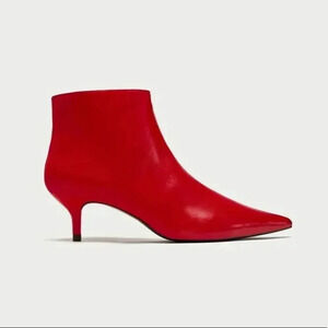 Zara Trafaluc Red Mid Heel Ankle Boots